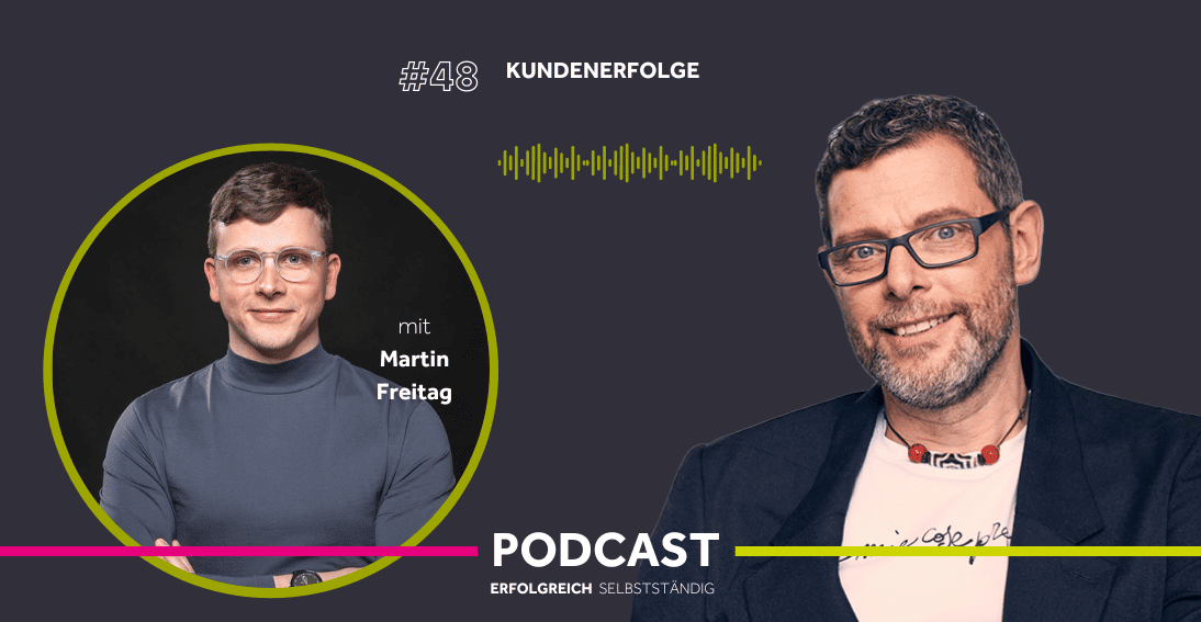 In der heutigen Folge sprechen wir mit Martin Freitag. Er ist Besitzer einer Medienagentur und war seit letztem Jahr bei uns im Coaching. In dieser Zeit hat er ist geschafft, vom Freelancer zum Unternehmer zu werden und wir sprechen gemeinsam darüber wie er diese Herausforderung mit unserer Unterstützung bewältigt hat.
